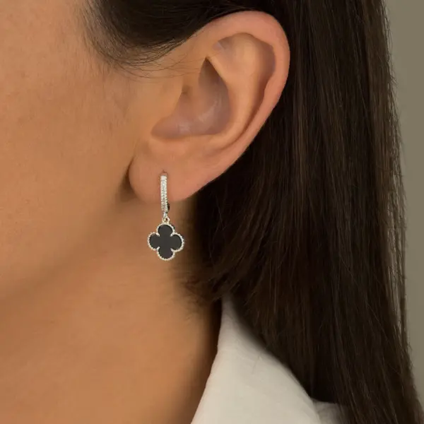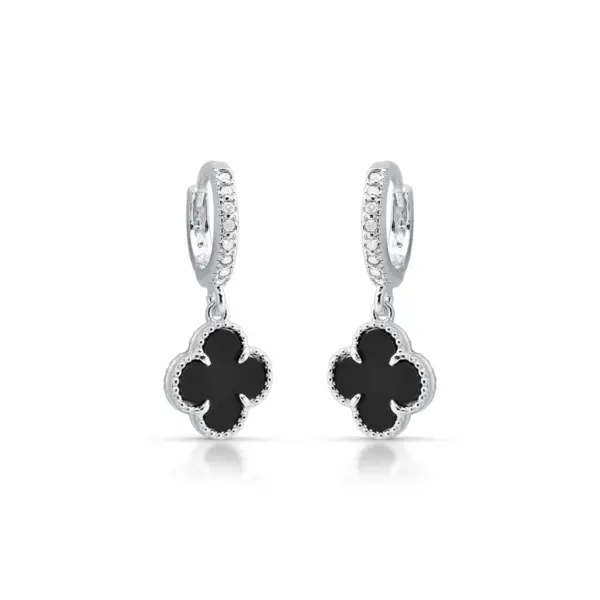 Argola cravejada trevo preto